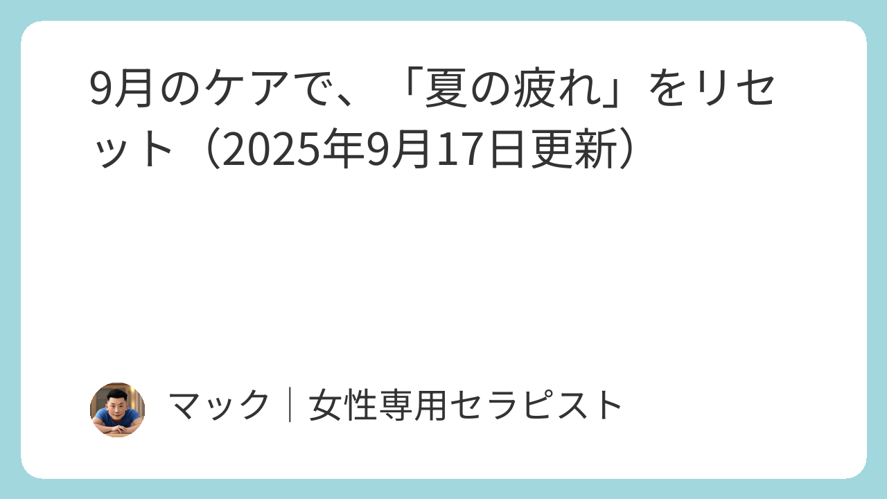 9月のケアで、「夏の疲れ」をリセット(2025年9月17日更新)