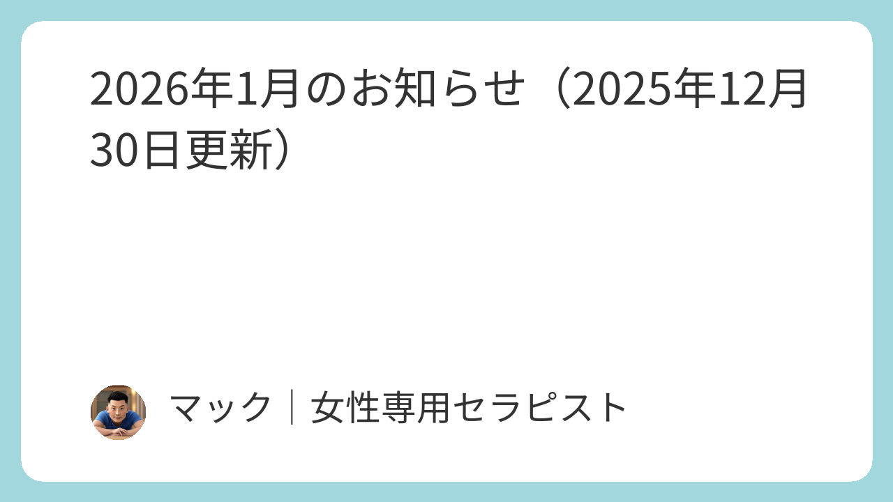 2026年1月のお知らせ(2026年1月10日更新)